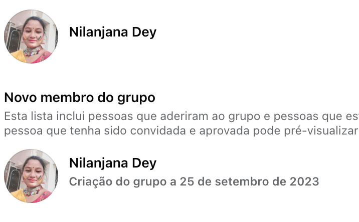 O grupo foi criado dias antes do registo do domain <pagemanagersupporthomecenter.website> o que indica que pertence à mesma rede e tem como único membro quem é, muito provavelmente, um dos scammers destas campanhas: Nilanjana Dey (o que indica tratar-se de um perfil real), com 2189 “amigos”, fotografias de actividade social e da sua própria família e onde se encontra utilizadores de facebook reclamando da fraude de que esta utilizadora participa por parte de outras vítimas do scam.