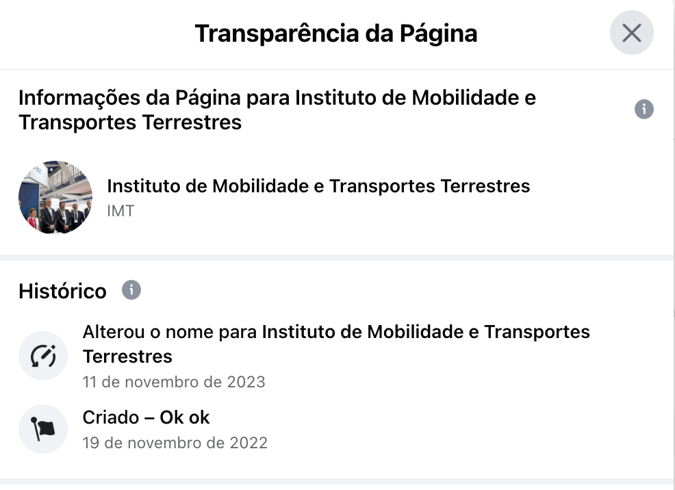 A página falsa do IMTT não tem – obviamente – nada a ver com o verdadeiro IMTT e, de facto, quando foi criada a 19 de Novembro de 2020 chamava-se muito prosaicamente “Ok ok”.