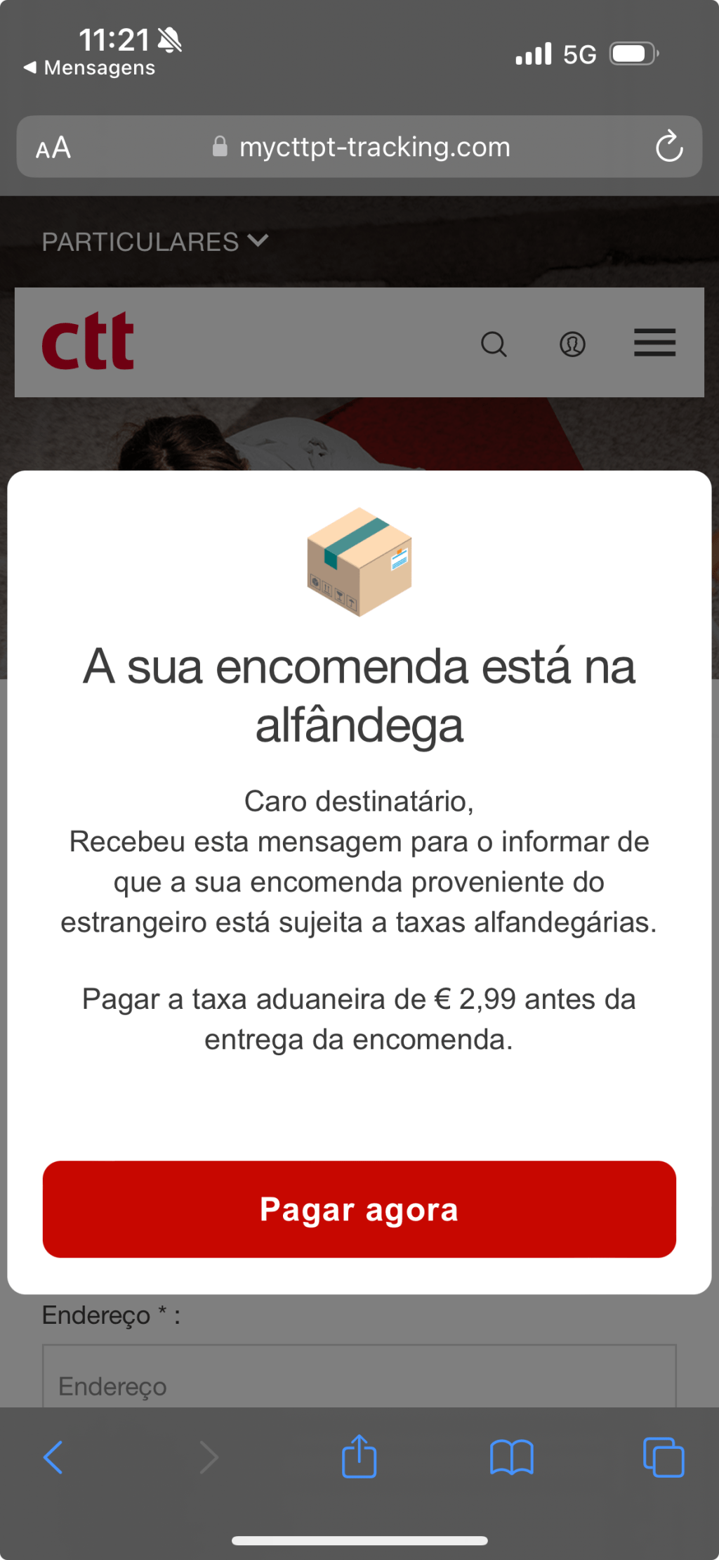 O smishing é uma forma de phishing que usa mensagens de texto SMS para tentar enganar as pessoas a fornecer informações confidenciais ou clicar em links maliciosos. Essas mensagens podem parecer vir de uma organização legítima, como os CTT, o seu banco ou uma operadora telefónica, mas na verdade são enviadas por burlões.