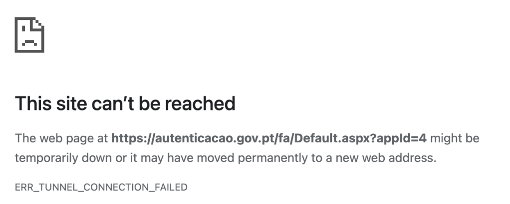 The web page at https://autenticacao.gov.pt/fa/Default.aspx?appId=4 might be temporarily down or it may have moved permanently to a new web address.