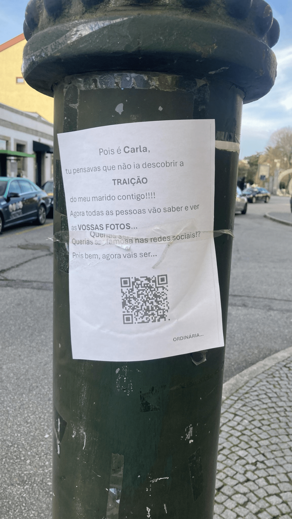 A publicidade na via pública dá direito a coimas pela câmara municipal e o uso deste “pretexto” que usa uma ameaça de divulgação de conteúdos sexualizados num contexto de um suposto triângulo amoroso para captar acessos é moralmente muito questionável mas, de facto, não é mais do que isso: uma campanha de marketing que nos serve para recordar o mantra: