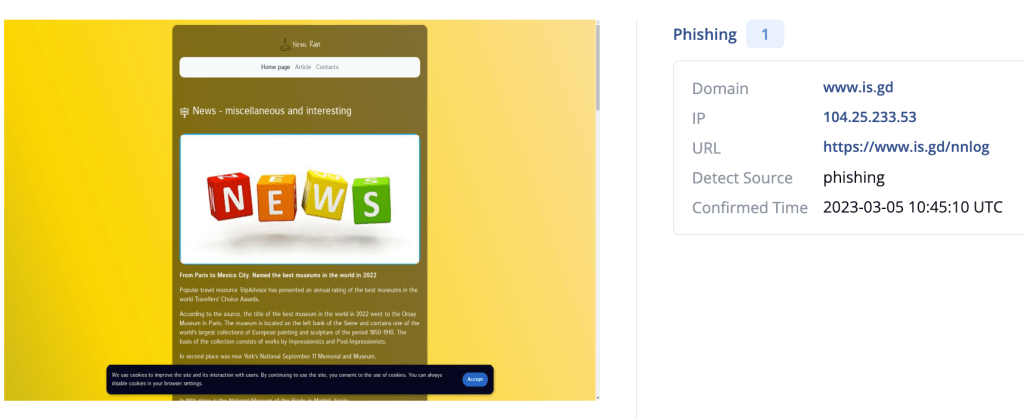 Este site está alojado na infraestrutura da CloudFlare e aponta para uma entidade indiana um ISP de nome: Gandi SAS e URL http://www.gandi.net. Terá sido a esta entidade que o cibercrimoso comprou o domain e aloja os seus serviços. Foi enviada uma nota de “abuse” a esta organização mas não respondeu.