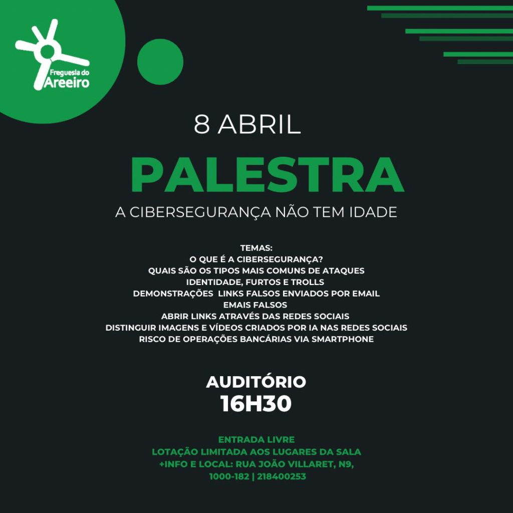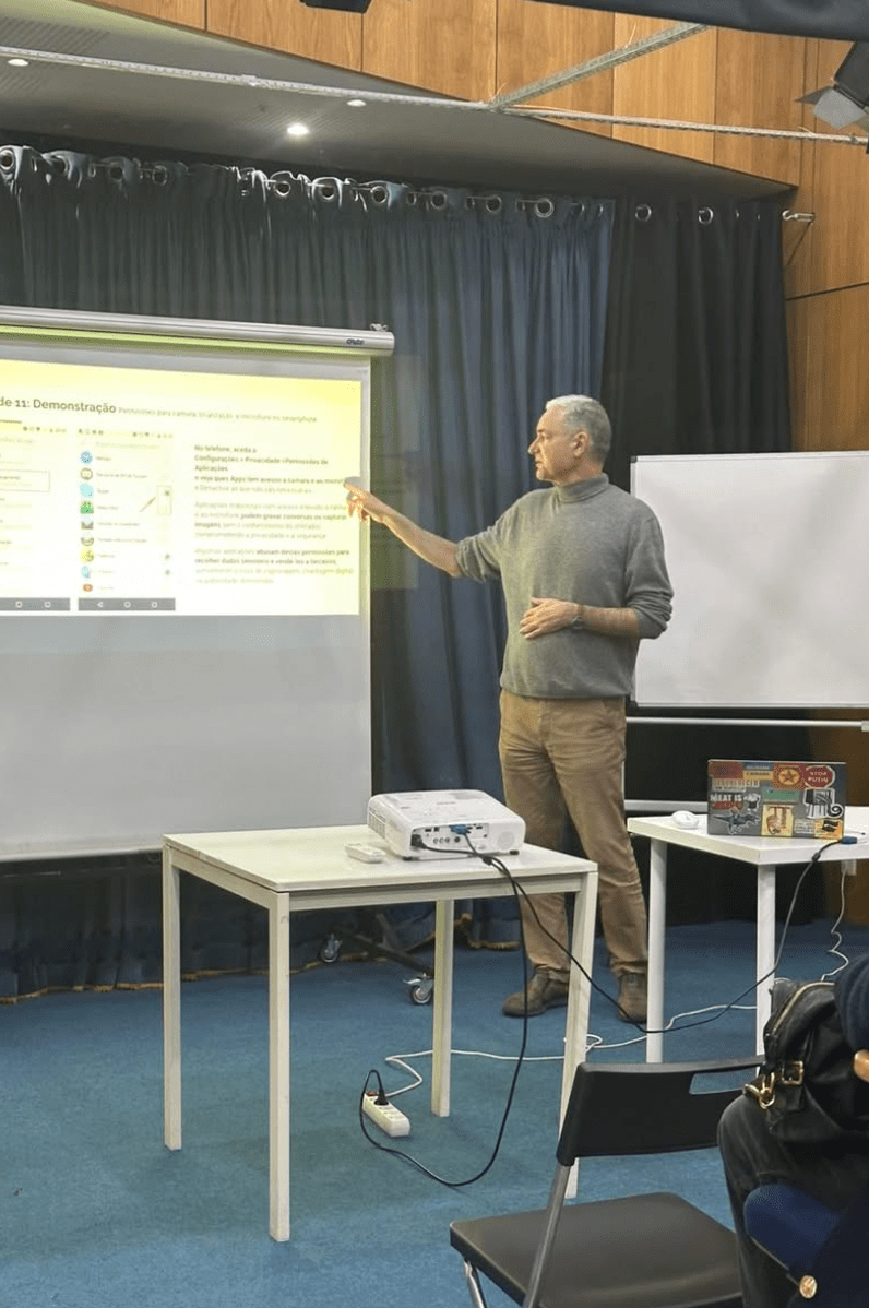 Ontem, 08.04.2025 na Academia Sénior do Areeiro (Lisboa) decorreu mais uma sessão da palestra “A Cibesegurança não tem idade”: