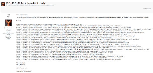 No site https://darkwebinformer.com/alleged-sale-of-leads-data-from-norte-moda/ surgiu ontem uma referência a uma empresa portuguesa: