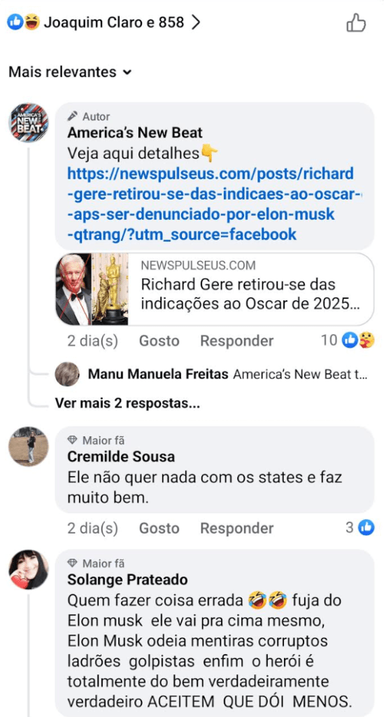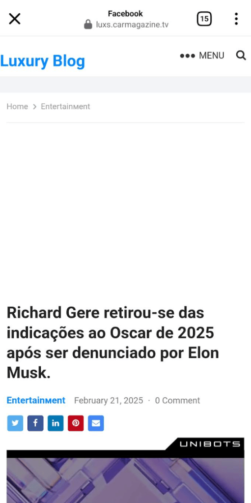Todos estes posts parecem ser iscas para sites de notícias falsas e de burlas com criptomoedas: é o caso luxs(editado).carmagazine(editado).tv e newspulse(editado).com.