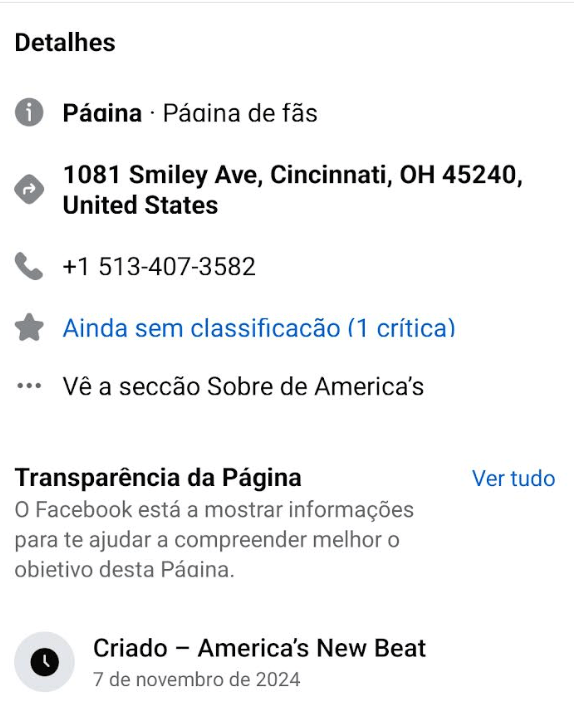 A Página alega ter sede em “1081 Smiley Ave, Cincinnati, OH 45240, United States” que, de facto, existe sendo o local onde apenas funciona o “El Asadero Mexican Bar & Grill”. A Página foi criada em 2024 e tinha, a 26.02.2025, mais de 17 mil gostos e 38 mil seguidores.