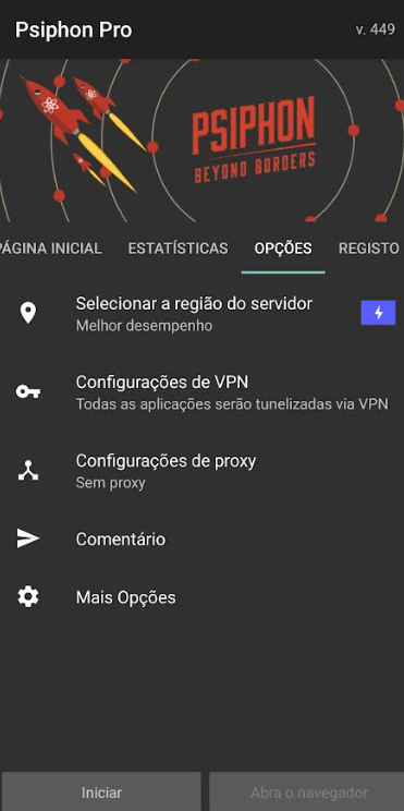Uso do Psiphon: