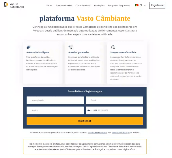 Mas no HTML não aparece nada que sustente tecnicamente essas alegações, nem documentação séria, nem entidade financeira identificada, nem disclosure técnico credível. “85% de precisão” é uma claim particularmente suspeita em trading. - Afirmações regulatórias muito vagas